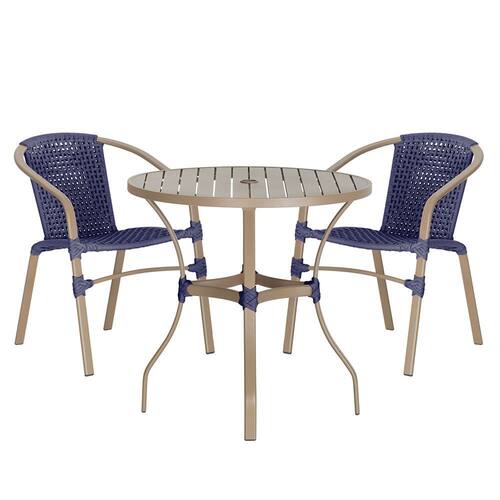 Composto por cadeiras de alumínio tramadas em corda náutica e uma elegante mesa com tampo ripado, esse conjunto une sofisticação e resistência em cada detalhe.