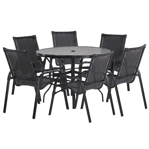 6 Cadeiras E Mesa 80cm Tampo Ripado Alumínio Piscina Jardim para Àrea Piscina e Jardim Trama - Marrom Escuro