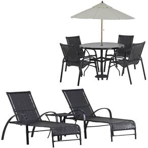 4 Cadeiras Emily e Mesa Roma 2 Espreguiçadeiras e Mesa Garden com Pintura e Ombrelone Alumínio Trama - Marrom Cacau
