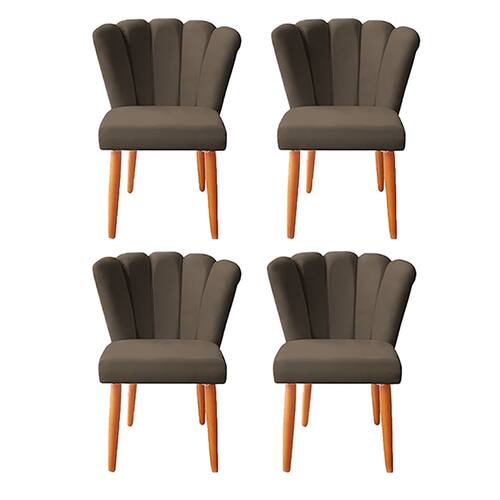 Kit 4 Cadeiras Poltrona Sala de Jantar Penteadeira Reforçada Decorativa Pétala Suede - Marrom