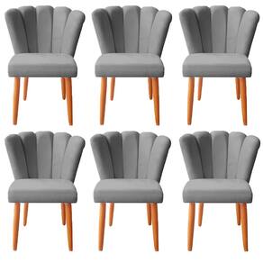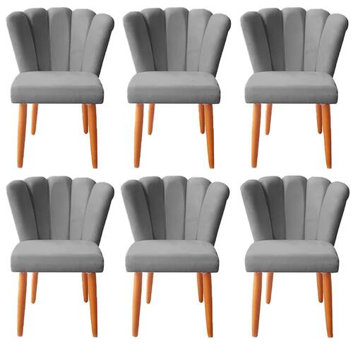 Kit 6 Cadeiras Poltrona Sala de Jantar Penteadeira Reforçada Decorativa Pétala Suede - Cinza