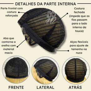 - Tamanho da peruca M (padrão) com alças internas ajustáveis;