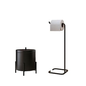 O porta papel, por sua vez, é produzido em aço com pintura epóxi eletrostática — tecnologia que proporciona alta resistência à corrosão e maior durabilidade. Disponível nas cores branco, dourado ou preto, ele possui estrutura robusta, altura de 47 cm e é entregue pronto para uso, sem complicações na instalação.
