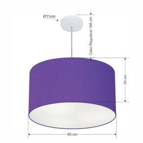 Lustre Pendente Cilíndrico Vivare Md-4101 Cúpula em Tecido 60x30cm - Bivolt - Cor: Roxo | Voltagem: 127/220V