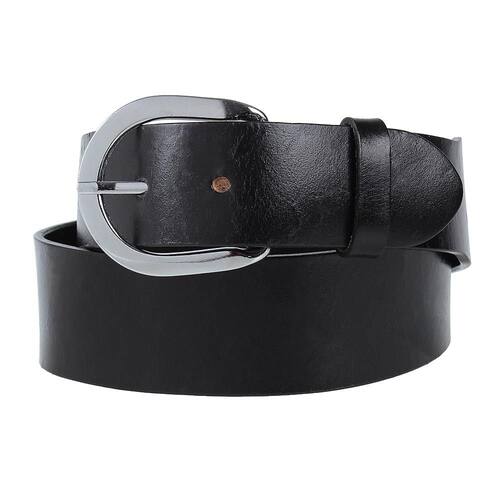 Cinto Cow Way fabricado em couro liso na cor Preto com 4,5cm de largura e possui fivela lisa de metal removível.