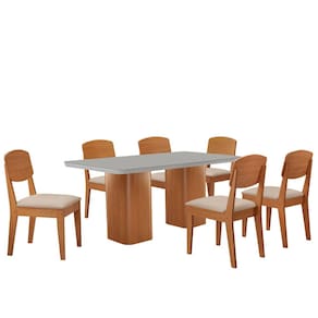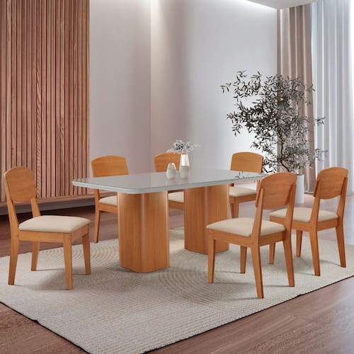 Mesa de Jantar Eloise 180cm Tampo MDF Vidro com 6 Cadeiras Copper Moderna Mobília - Off White