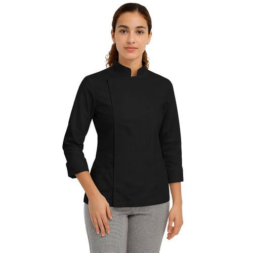 Dólmã chef de cozinha feminina com Zíper em algodão - P - Preto