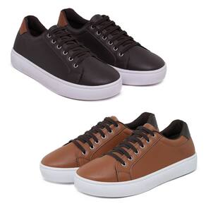 Kit 2 Sapatênis Casual Masculino Confort SF Ajuste Elástico - 38 - Marrom
