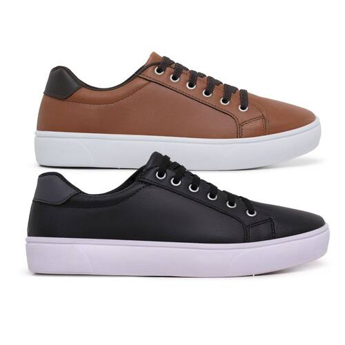 Kit 2 Sapatênis Casual Masculino Confort SF Ajuste Elástico - 41 - Preto