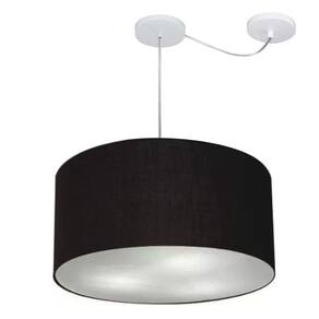 Lustre Pendente Cilíndrico Com Desvio de Centro Vivare Md-4236 Cúpula em Tecido 45x25cm - Bivolt - Cor: Preto | Voltagem: 127/220V
