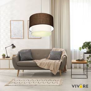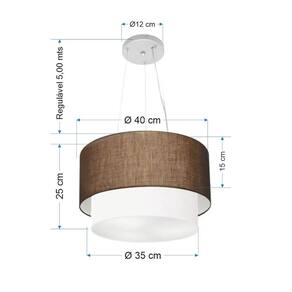 Lustre Pendente Duplo Cilíndrico Vivare Md-4158 Cúpula em Tecido 40x35cm - Bivolt - Cor: Café-branco | Voltagem: 127/220V
