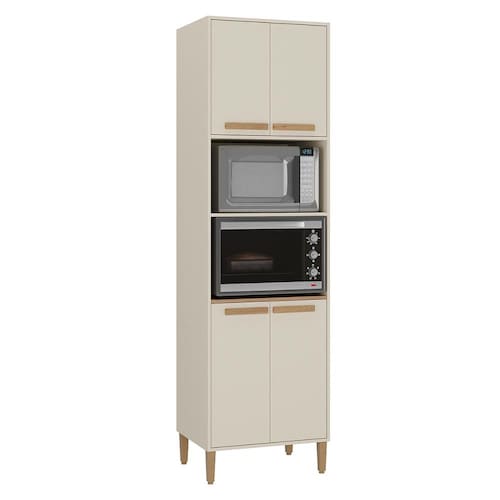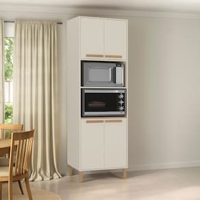 Com um design elegante, ele acomoda perfeitamente um micro-ondas ou forno, mantendo tudo organizado e ao seu alcance.