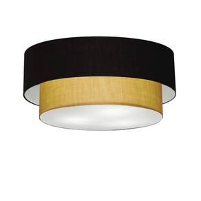 Plafon Duplo Cilíndrico Vivare Md-3021 Cúpula em Tecido 80x60cm - Bivolt - Cor: Preto-palha | Voltagem: 127/220V