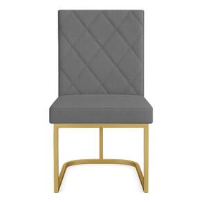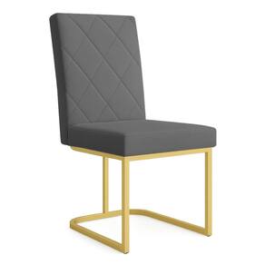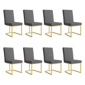 Kit 08 Cadeiras de Jantar Estofada Siena Linho Base de Ferro Dourada - Pallazio - Grafite