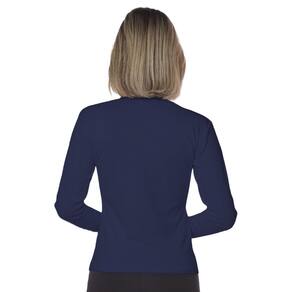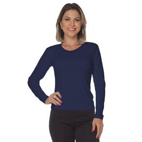 Baby look manga longa malha canelada - Gola redonda - Azul Marinho - G
