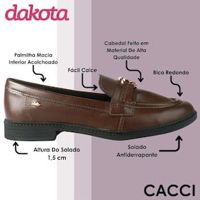Versátil, atemporal e cheio de estilo, o loafer Dakota é a escolha certa para quem quer praticidade com um toque refinado. Combine com jeans para um visual casual chic, ou aposte em saias e vestidos para um look mais elegante. Com ele, você está sempre pronta para qualquer ocasião.