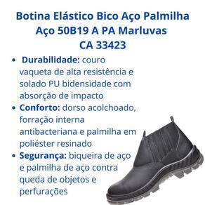 Adquira já sua Botina Elástico Bico Aço Palmilha Aço 50B19 A PA Marluvas CA 33423 e equipe-se com o melhor em proteção e conforto!