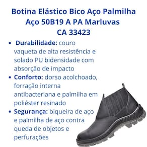 Botina Elástico Bico Aço Palmilha Aço 50B19 A PA Marluvas CA 33423  Segurança, Conforto e Praticidade