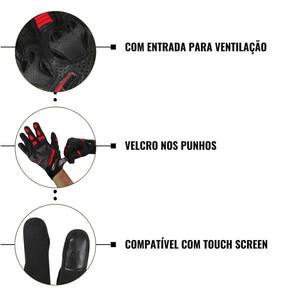 Seu sistema de ventilação e compatibilidade com touch screen nos dedos indicadores garantem praticidade e conforto extremo, enquanto o couro no mindinho reforça a aderência ao guidão.