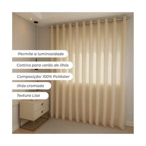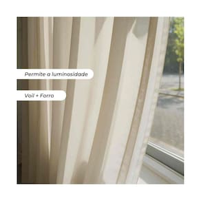 Privacidade e luminosidade combinadas na Cortina Duplex! Prática e elegante, essa opção é ideal para salas de TV e quartos. Feita em tecido liso 100% poliéster, com forro também em poliéster, ambas as camadas no mesmo varão. Toque de glamour e estilo clássico para o ambiente. Composto por 2 partes de 2,70m de largura por 2,50m de altura, indicada para varões de 2,50m até 3,00m com 36 ilhóses. Adicione beleza e aconchego à sua casa com a Cortina Duplex. Perfeita para decorar sua sala ou quarto. Adquira já a sua!