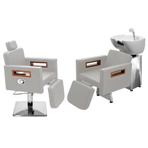 Kit Salão de Beleza 1 Cadeira Reclinável C/Ap Quadrada + 1 Lavatório C/Ap Base Inox Tunísia - Cor: BrancoFacto