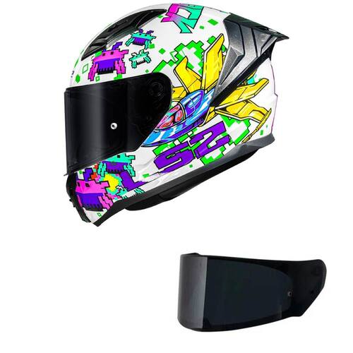 Capacete LS2 FF810 Vigo Space Attack Branco e Roxo Mais Viseira Fumê