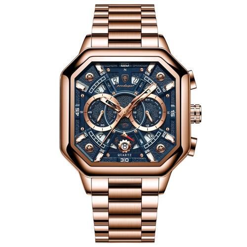 Relógio de Quartzo com Cronógrafo Mostrador Luminoso Pulseira em Aço Inoxidável 5ATM - Azul Rose