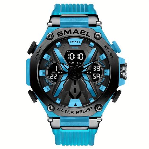 Robusto e confiável, o movimento de dupla exibição digital é acionado eletronicamente, oferecendo precisão e durabilidade. Além disso, é à prova d'água até 5ATM, permitindo que você mergulhe de cabeça na aventura sem se preocupar com danos. Equipado com uma conveniente luz noturna e um botão de fácil acesso, este relógio permanece funcional até mesmo nas condições de iluminação mais desafiadoras.