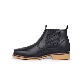 Material cabedal: 100% couro Bico: Quadrado Palmilha: EVA, muito macia Solado: Sola de látex costurada (blaqueada), toda costurada Detalhe: Elásticos nas laterais para facilitar o calce