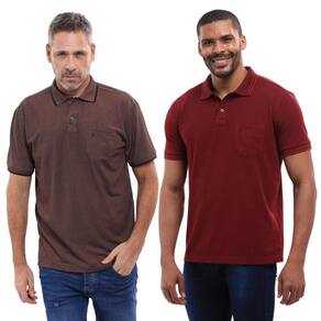 Kit 2 Camisa Polo Masculina Pique Jacquard com Bolso Casual - Marrom Cacau - P