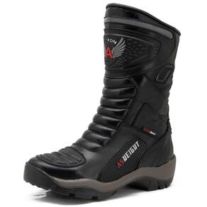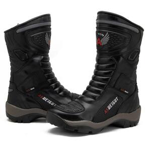 Criada para os pilotos que exigem o máximo de proteção e performance, esta bota possui um design imponente e robusto. Confeccionada em couro resistente, ela combina diferentes texturas e conta com áreas acolchoadas e reforçadas que oferecem segurança superior. O solado de alta performance em borracha tratorada garante excelente aderência e estabilidade. A qualidade de sua construção é visível no cano alto, que protege integralmente a perna, e no acabamento detalhado, fazendo dela um equipamento indispensável para a sua pilotagem.
