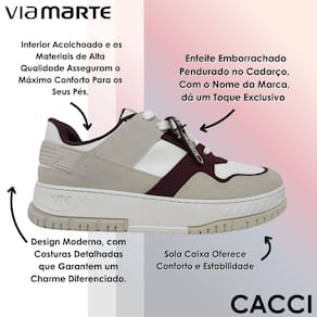 O tênis casual Via Marte une design moderno e conforto para acompanhar sua rotina com muito estilo. Seu interior acolchoado, aliado aos materiais de alta qualidade, garante uma sensação macia e aconchegante a cada passo, mantendo os pés confortáveis durante todo o dia. O fechamento em cadarço oferece ajuste seguro, enquanto o enfeite emborrachado com o nome da marca adiciona um toque exclusivo e sofisticado ao modelo. As costuras detalhadas valorizam o visual, trazendo um charme diferenciado que combina com produções casuais ou mais elaboradas. O bico arredondado complementa o design, proporcionando um caimento harmonioso no pé e reforçando seu apelo versátil. O solado caixa, além de garantir estabilidade, contribui para um caminhar seguro e confortável, tornando o calçado ideal para longos períodos de uso. Perfeito para combinar com diferentes peças do guarda-roupa, desde jeans e calças alfaiataria até vestidos e saias, é a escolha certa para quem busca praticidade, estilo e bem-estar no dia a dia.