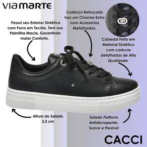 Esse tênis Via Marte é a escolha perfeita para mulheres que buscam unir conforto, estilo e praticidade em um único calçado. Desenvolvido com cabedal em material de alta qualidade e costuras bem detalhadas, ele entrega durabilidade e um acabamento sofisticado que valoriza qualquer produção. O solado flatform de três centímetros e meio traz estabilidade, além de oferecer uma pegada moderna e versátil, ideal para quem gosta de compor looks cheios de personalidade.
