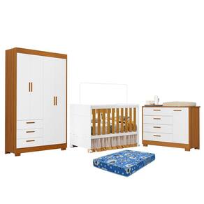 Dormitório Zaki Guarda Roupa, Cômoda e Berço Katatau com Colchão Physical - Reller Móveis