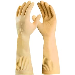 Especificações técnicas - Material: látex natural de alta qualidade. - Punho longo: permite imersão até o antebraço para maior proteção. - Punho com virola: evita a entrada de líquidos no interior da luva. - Superfície antiderrapante: palma e dedos com textura para melhor aderência. - Resistência térmica: suporta temperaturas de até 100°C.