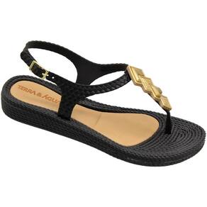 Sandália Rasteira Terra e Água Tramada Aplique Geométrico Feminino