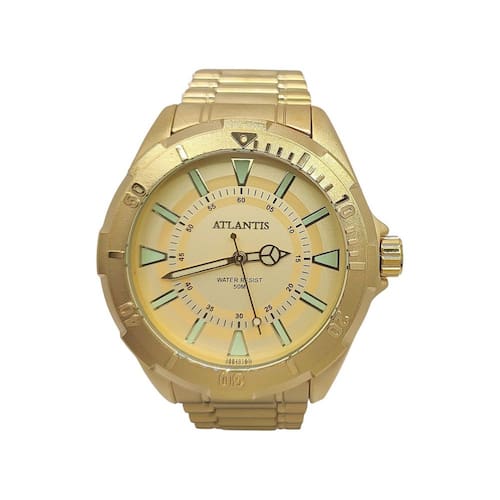 Relógio Atlantis Analógico Grande Dourado Resistente agua 50 - Cor do Mostrador: Dourado