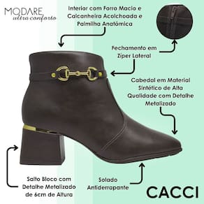 Com um visual moderno e cheio de personalidade, essa bota de salto com cano baixo da Modare é perfeita para mulheres que buscam praticidade sem abrir mão da elegância. O design é versátil e fácil de combinar, ideal para acompanhar desde produções mais formais até looks casuais com um toque refinado. O detalhe metalizado aplicado de forma discreta adiciona um charme extra ao modelo, elevando o estilo com sofisticação e delicadeza.