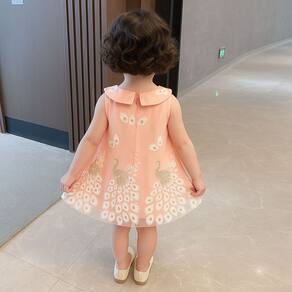 Vestido Infantil Aniversário Pavão Ouro Festa Casamento Dama - Rosa - 3