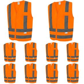 Kit Com 10 Colete De Sinalização Refletivo Com Bolso Fluorescente - Kalipso