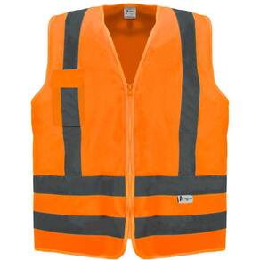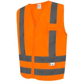 Colete de Sinalização de alta visibilidade, confeccionado em tecido 100% poliéster fluorescente com faixas reflexivas impermeáveis na parte frontal e costa, fechamento frontal em zíper. Performance de visibilidade superior para o indivíduo com o aumento da cobertura do tronco.