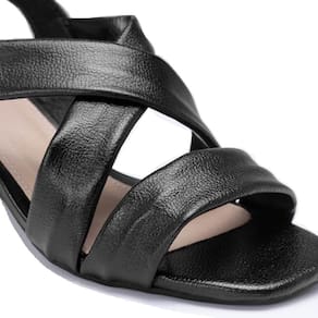 Sandália Salto Bloco Tiras Couro Feminino - 35 - Preto