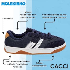 O Sapatênis Molekinho é a escolha perfeita para quem busca um calçado versátil, moderno e confortável para acompanhar os pequenos em todas as ocasiões. Com um design charmoso e acabamento limpo, esse modelo combina facilmente com diferentes estilos, desde o look casual até produções mais arrumadinhas para eventos especiais.
