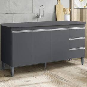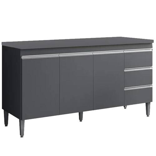 Balcão Reajl com Tampo, agregando modernidade e praticidade para sua cozinha. Estrutura em MDP (12/15 mm - fundo 3 mm). Composto por portas e gavetas com dobradiças e corrediças metálicas, 1 prateleira interna e puxadores em alumínio. Pés em plástico com regulagem, garantindo estabilidade em qualquer piso. Produto será entregue em 02 volumes.