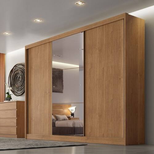 Guarda Roupa Casal em MDF com Espelho 3 Portas de Correr Sonetto Novo Horizonte - Marrom