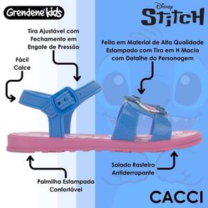 Produzida com material de alta qualidade, essa sandália conta com tira em H macia e o detalhe do personagem Stitch, que dá um toque lúdico e cheio de personalidade. O solado rasteiro com acabamento antiderrapante garante estabilidade durante as brincadeiras, tornando o uso ainda mais seguro.