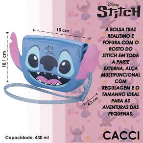 A bolsa traz realismo e fofura com o rosto do Stitch em toda a parte externa, alça multifuncional com regulagem e o tamanho ideal para as aventuras das pequenas. Para completa esse combo, a clássica Flox vem com a palmilha estampada com o rosto e elementos reconhecidos do personagem, além do fechamento autocolante e efeito bicolor.