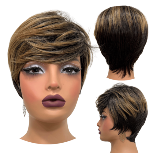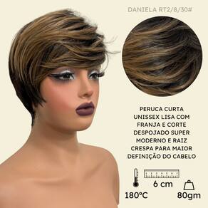 Peruca curta com franja unissex orgânica lisa repicada - Cor: RT2/8/30