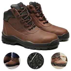 Bota para uso ocupacional com fechamento em cadarço e confeccionada em vaqueta graxo marrom. Forração interna na gáspea e forro do cano em nylon com excelente absorção de suor e solado poliuretano (PU) bidensidade e estabilizador de caminhada.