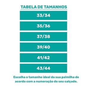 Tamanhos: 33/34, 35/36, 37/38, 39/40, 41/42, 43/44